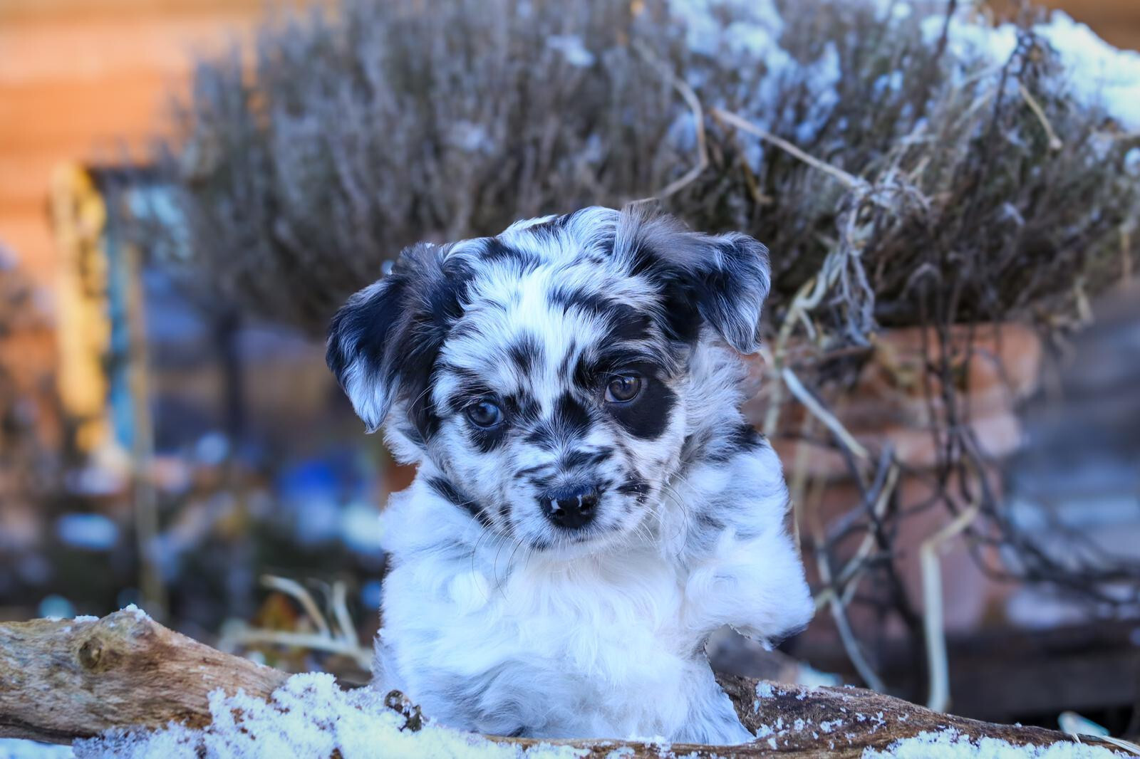 Unsere kleinste und zarteste kleine Blue Merle bi Hündin. Klein aber oho, ein richtiges Gute-Laune-Bärchen mit ihrem Wackelpo - dieser ist ihr erhalten geblieben. Sie darf ihr Frauchen in die Tierarztpraxis begleiten und darf schon jetzt Agilityluft schnuppern. So schön, dass sie ganz nah von uns wohnt und wir sie regelmässig sehen dürfen - so bleibt sie immer ein wenig "bei uns".